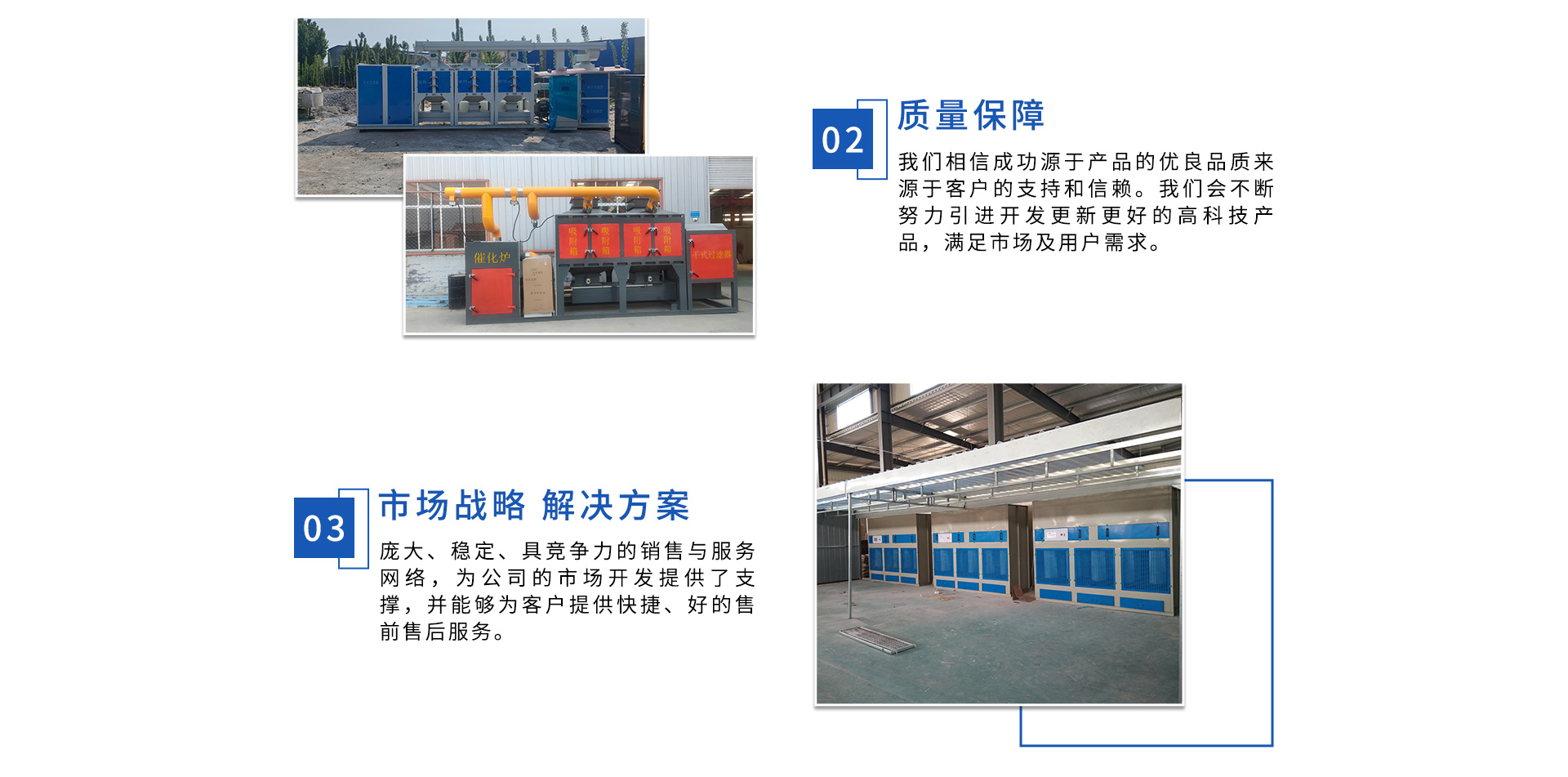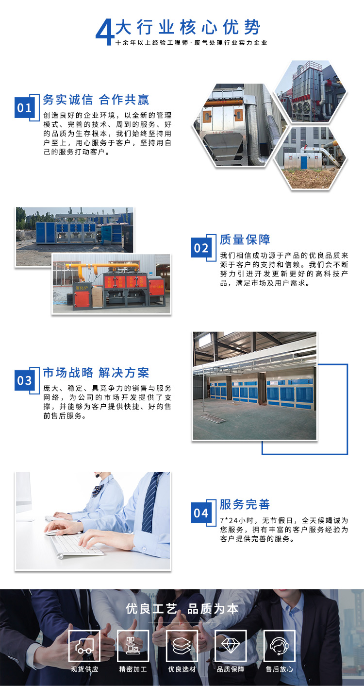 公司自成立以來,始終專注于工業(yè)廢氣、污水、粉塵等環(huán)境污染的治理,先后研發(fā)出催化燃燒設備、光氧催化廢氣處理設備、低溫等離子廢氣處理設備、粉塵處理-體化設備等一系列環(huán)保設備,產(chǎn)品先后通過ISO901質(zhì)量管理體系認證、中國環(huán)境保護產(chǎn)品認證。